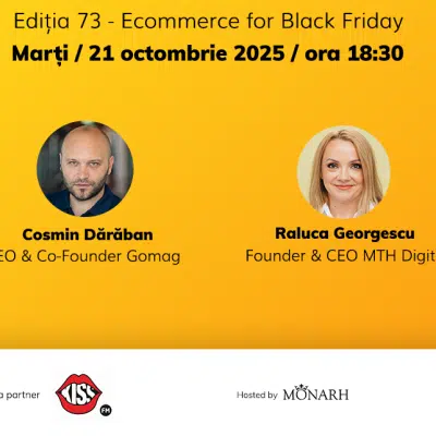 “E-Commerce for Black Friday” este tema ediției 73 a SocialPedia. Evenimentul este dedicat tuturor pasionaților lumii digitale, este powered by GoMag și se va organiza