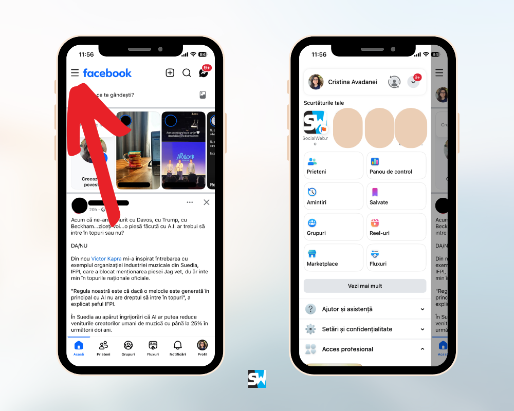 Acum, când apeși pe poza ta în meniul de jos, te duce pe profilul tău.